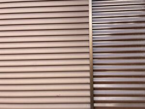 シャッター部分も確認したところ、全体的に色あせが進行していました。
